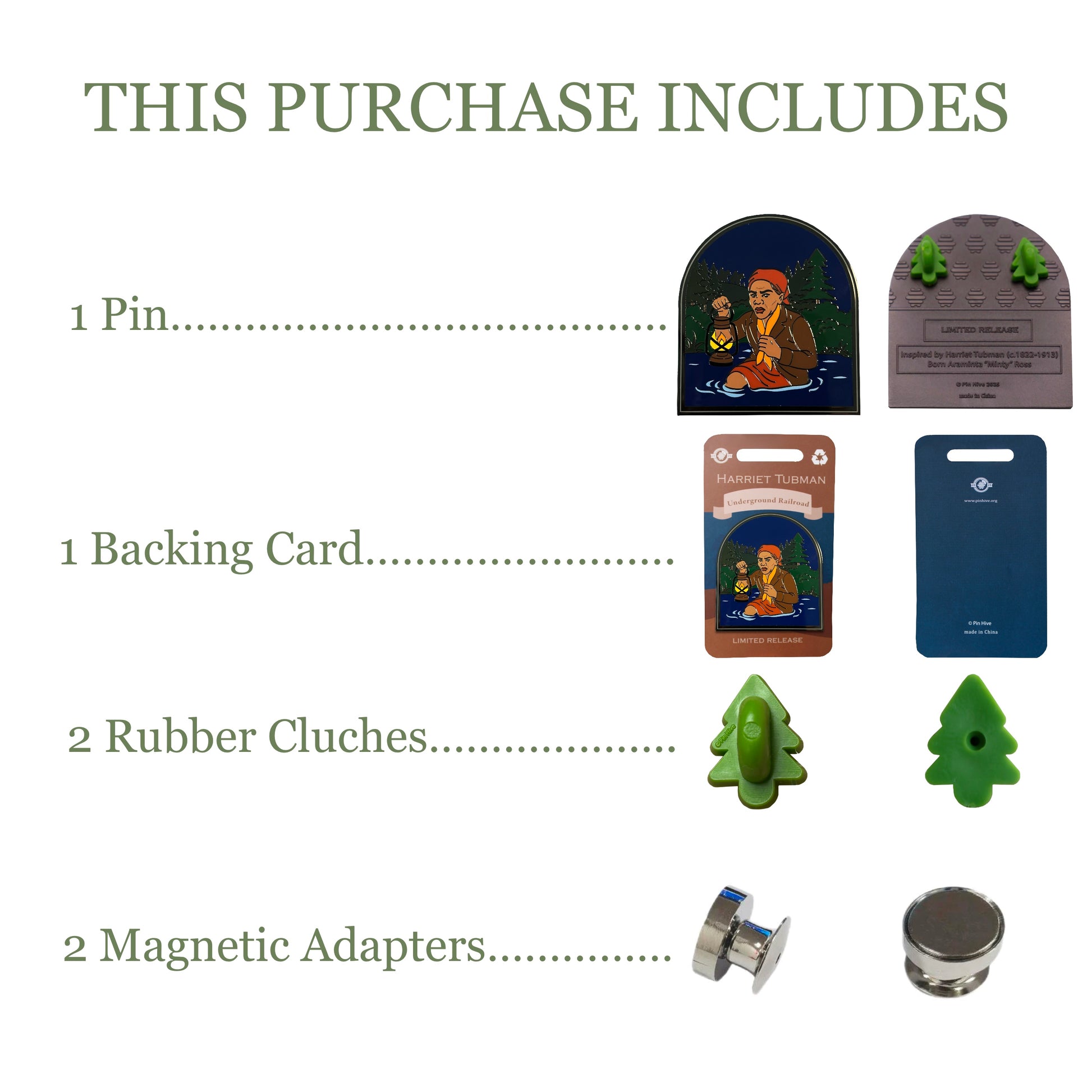 This piece was created to honor Harriet Tubmanâs bravery and her role in shaping history. At Pin Hive, we celebrate her legacy of resilience, leadership, and justice. We proudly stand for equality, inclusion, and human rights. This pin is intended solely as a historical tribute, capturing a powerful story on an enamel canvas.