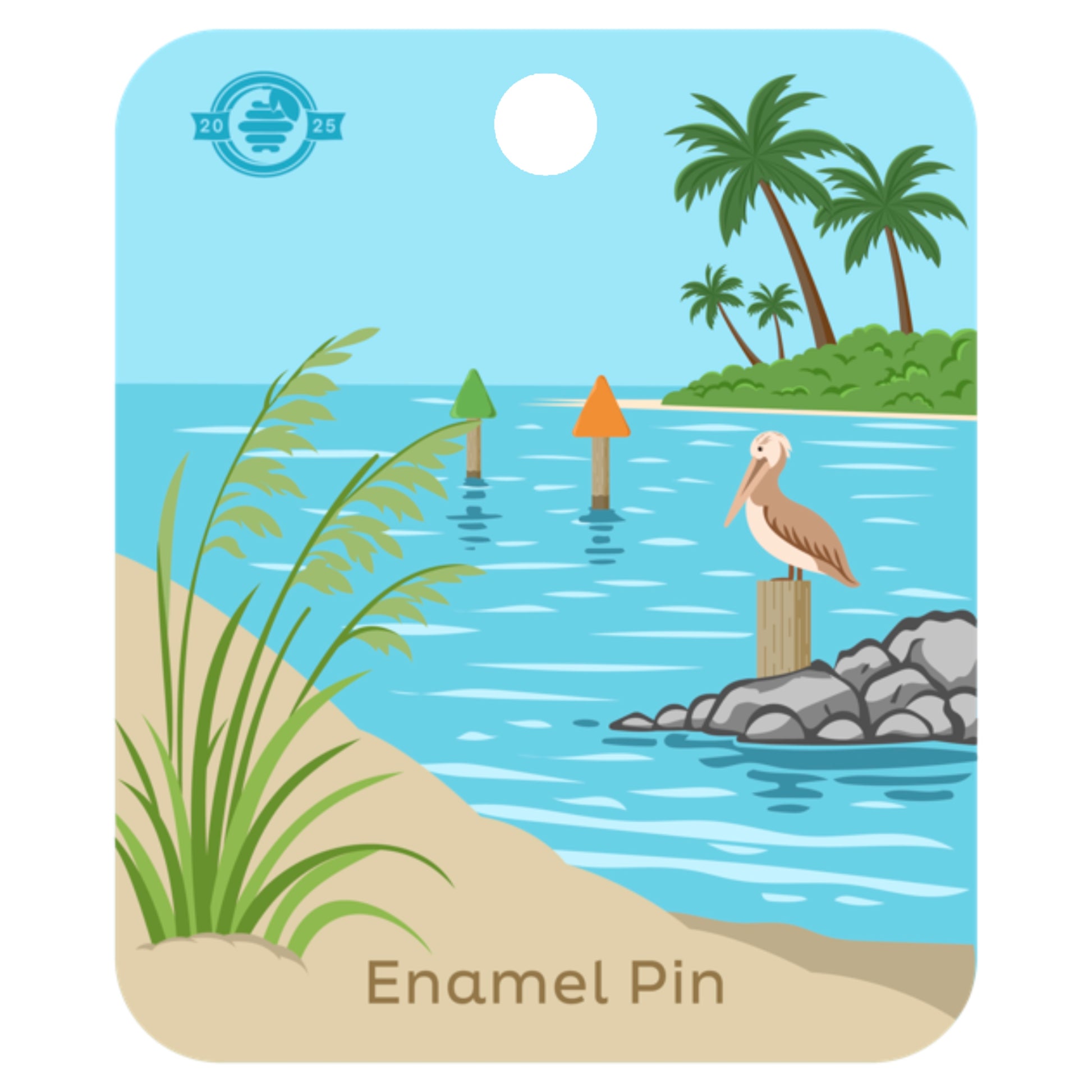 Celebrate one of Florida’s most iconic coastal landmarks with this detailed enamel pin featuring the Hillsboro Inlet Lighthouse along Hillsboro Beach’s famous Millionaires' Mile. The design captures the tall black and white skeletal tower standing over turquoise water, framed by palms and shoreline: based on the artist’s own view growing up visiting her grandparents’ home just a few miles down the beach.