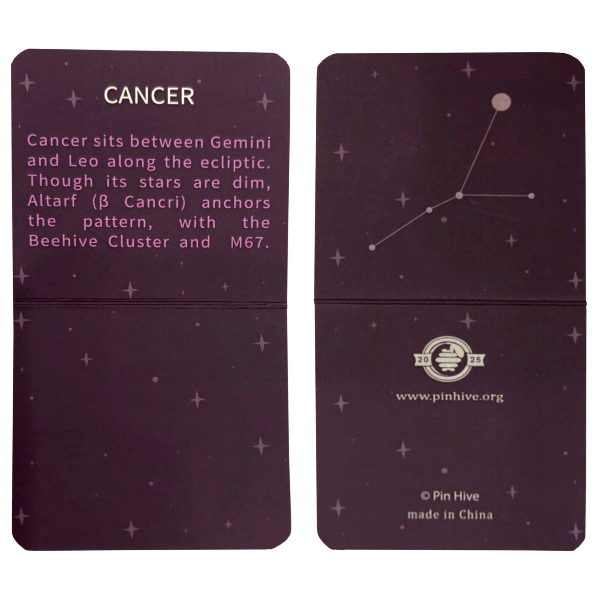 Each pin comes tucked into its own foldable info card that opens like a tiny star guide. Inside you’ll find the constellation art and a short educational write up, so collectors can learn a bit of astronomy while they trade and display.